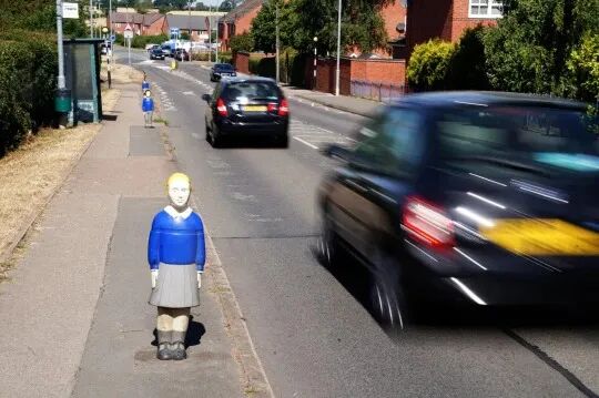 I think the painted bollards would be more of a distraction rather than a warning of children around which could be more dangerous? 我认为这些人形防撞柱不像能提醒司机附近有儿童出没,反而更容易让他们分神,这不是更危险吗?