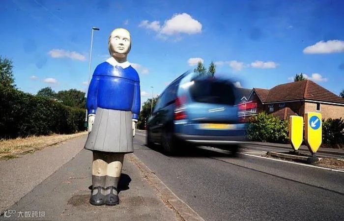 英国莱斯特郡的斯托尼·斯坦顿政府政府设置了这些金童玉女防撞柱,位于一条繁忙路段的街道边缘,用来提醒司机前方区域有儿童出没,注意安全驾驶。