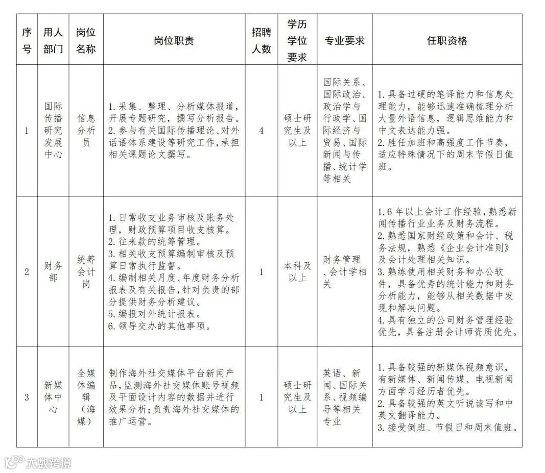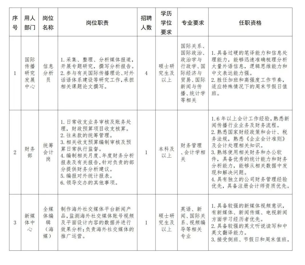3.热爱党的新闻事业,恪守新闻工作者职业道德,热爱国际传播事业,具有良好的职业操守和团队合作精神。