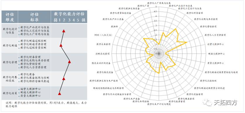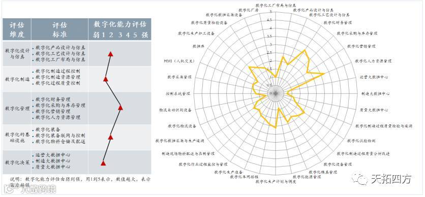 在未来工业4.0时代,智能工厂将取代现在单一的工厂,并且具备更加柔性和智能的能力,支撑更快产品投产与下线,智能工厂将包含 “智能化生产技术”,包括产品全生命周期管理、企业资源规划系统、生产运营管控、应用链管理、实时数据库、先进过程控制,以及分散控制系统和现场总线控制系统、大数据处理、云计算技术、增材制造等新技术应用。如此多的智能制造技术正在重塑制造业,那么制造企业非常有必要基于能力成熟度模型诊断结果来明确数字化企业的愿景。笔者曾帮某一中小企业进行过数字化诊断,并基于诊断结果帮助企业分析数字化企业愿景。此企业正在努力由设备制造商向系统集成商转型,并希望借此机会抓住机遇迅速做大做强,实现可持续发展,未来通过智能制造缩短产品上市时间、减少设计修改、缩短工艺规划周期和生产制造周期、提升产品质量和降低产品成本,为客户提供满意度超值的智能化产品。