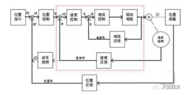 伺服电机一般为三个环控制,所谓三环就是3个闭环负反馈PID调节系统。