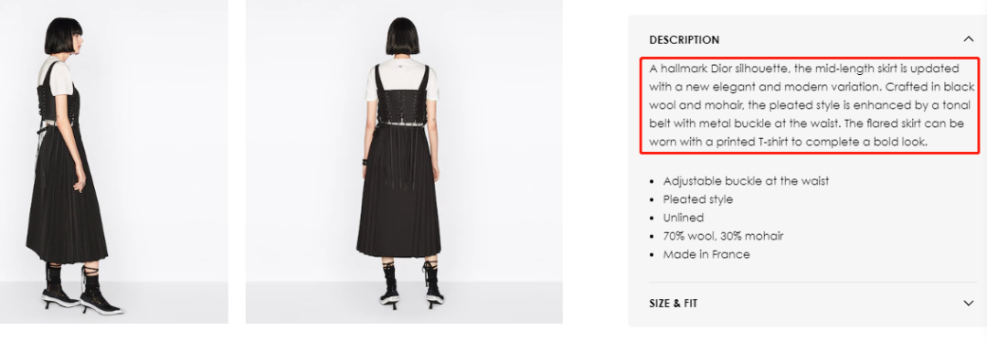 On the official website of Dior, the brand said the controversial mid-length skirt is "a hallmark Dior silhouette" in the description, which contains no content that indicates the skirt has anything to do with Chinese traditional clothes or culture.