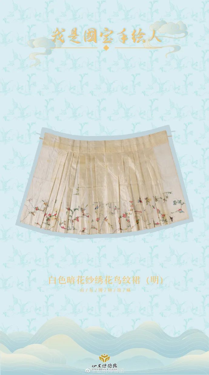 The skirt was very popular in the Ming Dynasty from empress to ordinary people. According to different classes and occasions, the material, pattern, and color of horse face skirts are different.