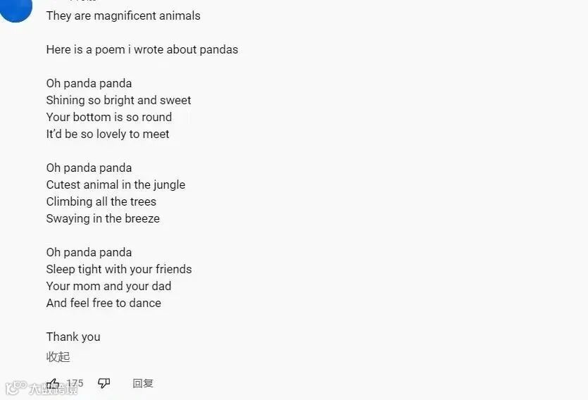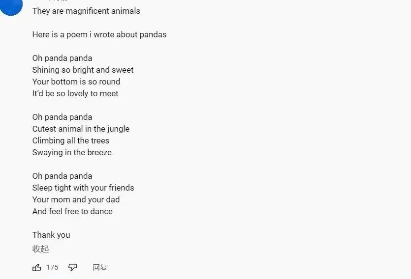 Oh panda panda Shining so bright and sweet Your bottom is so round It’d be so lovely to meet