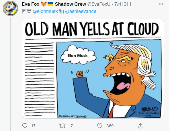 由于发帖是在特朗普的个人平台,而马斯克的主战场在推特,吃瓜的网友又马不停蹄地把对骂内容搬运给马斯克看。