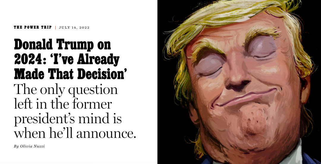 报道称,特朗普近日在接受《纽约》杂志采访时被问及“哪些因素会影响其参选”,他直接表示“任何因素都不再考虑了,在我的心里,我已经做出了这个决定”。