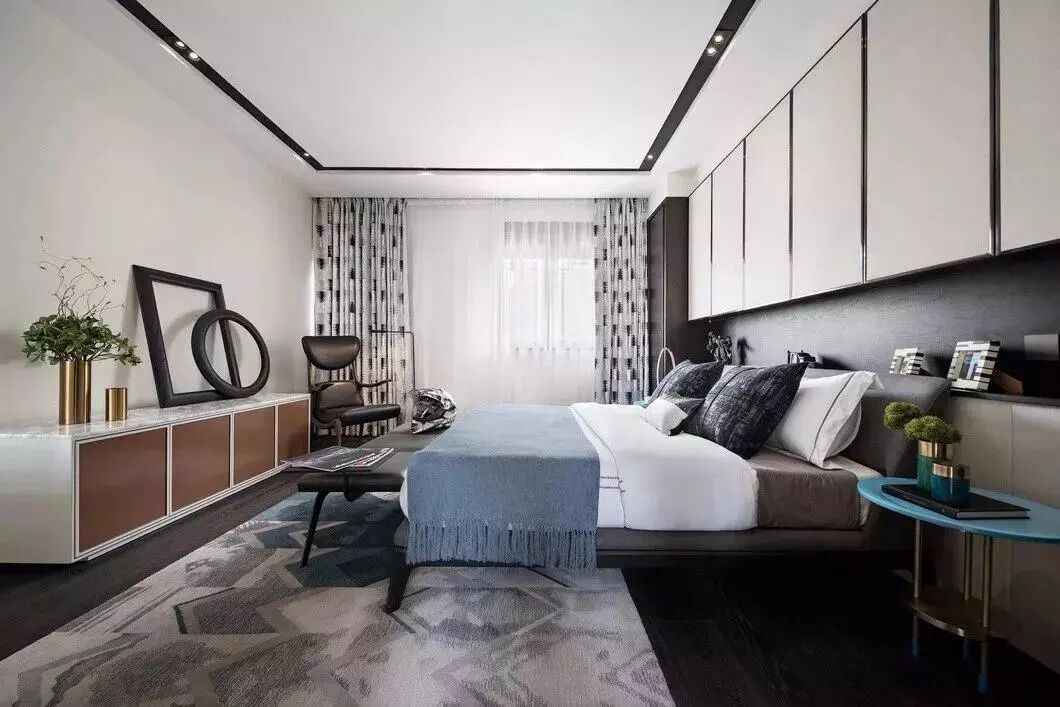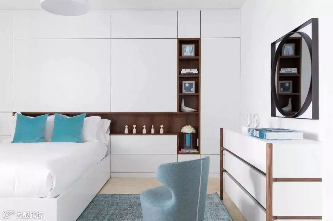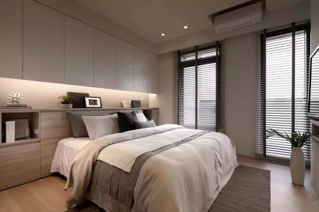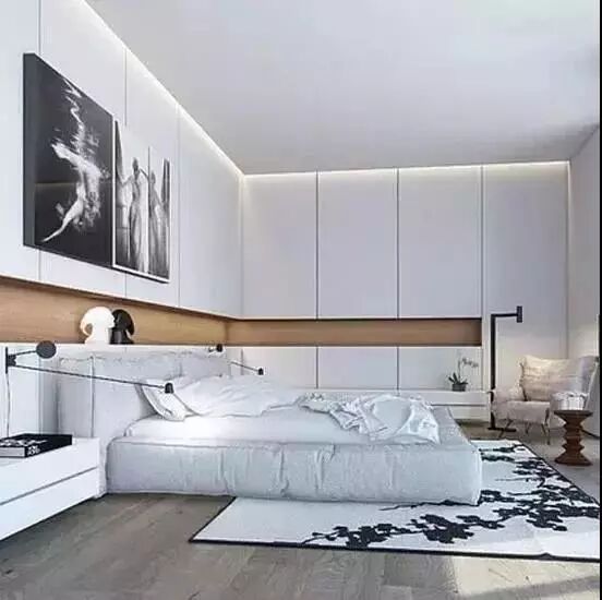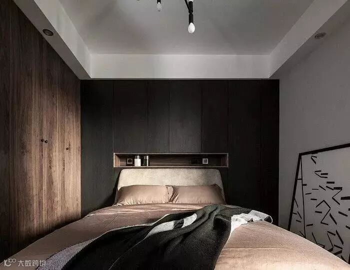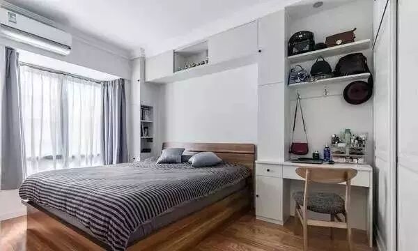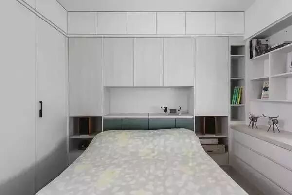 就像榻榻米书房那样,一些比较小的卧室,衣柜没位置摆放的,一般都会在床头或床尾把衣柜组合进去设计。