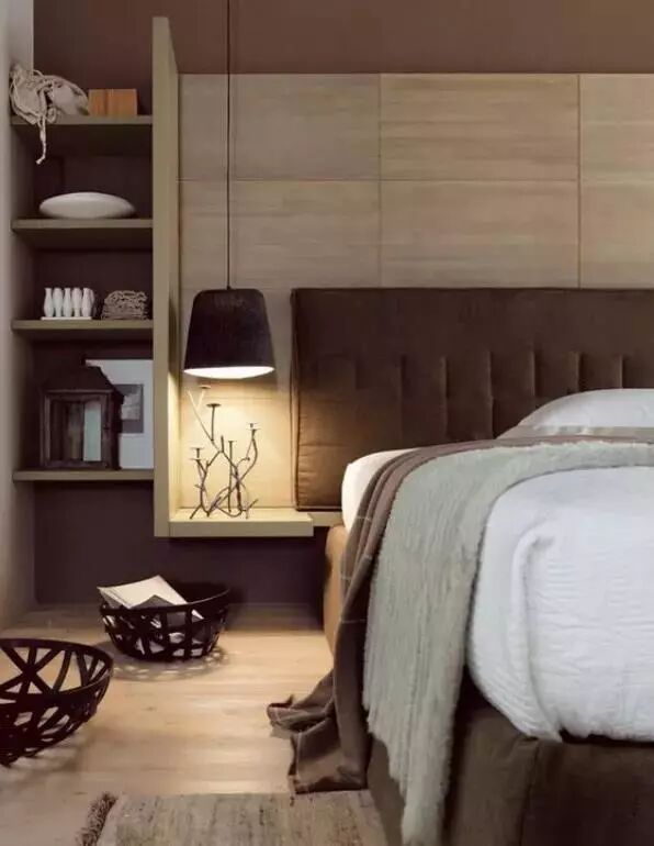 很多人家里的床头一般都是做一些挂画、壁灯、墙布等进行装饰,实用性通常不强,而对于需要收纳空间多的家庭来说,将床头墙壁改造成收纳空间之后,不管是实用性还是卧室整体气质都大幅提升,舒适又大气,实用又美观。