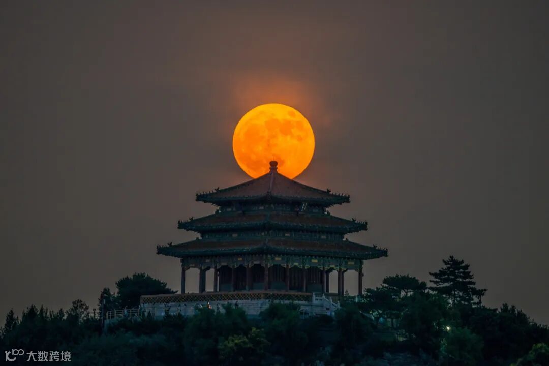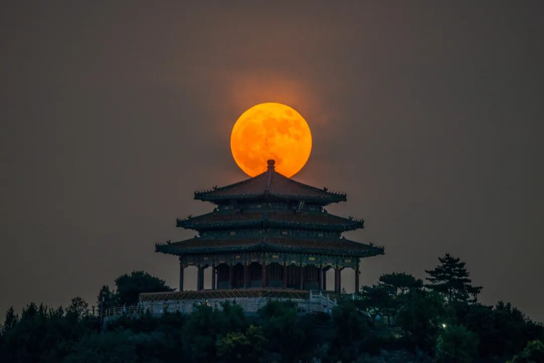 6月14日,超级满月定格北京万春亭 图源:东方IC