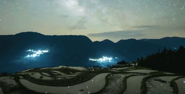 5月初,贵州黔东南苗族侗族自治州,满天繁星倒映在梯田水面上,璀璨星光变幻流转