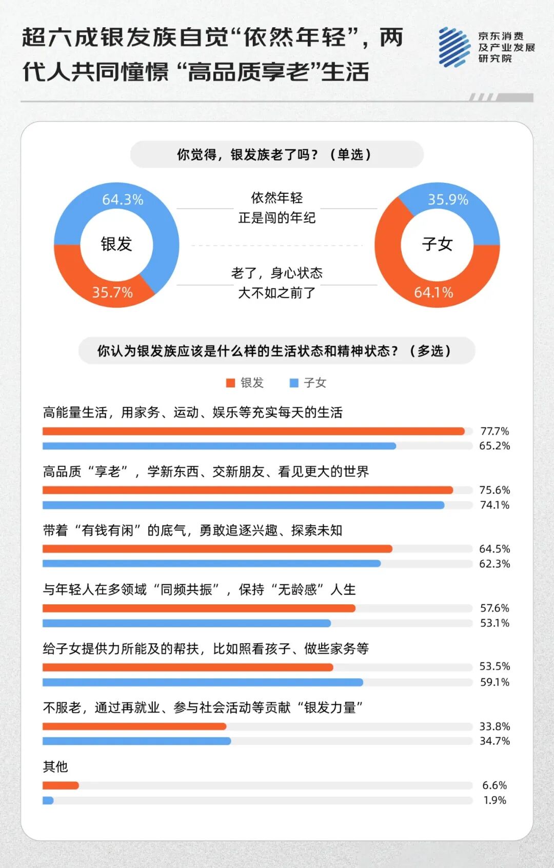 银发族正用自我觉醒打破固有的认知。调研显示,超过六成银发族笃定地认为自己“依然年轻,正是闯的年纪”,用主动的心态改写年龄的意义。