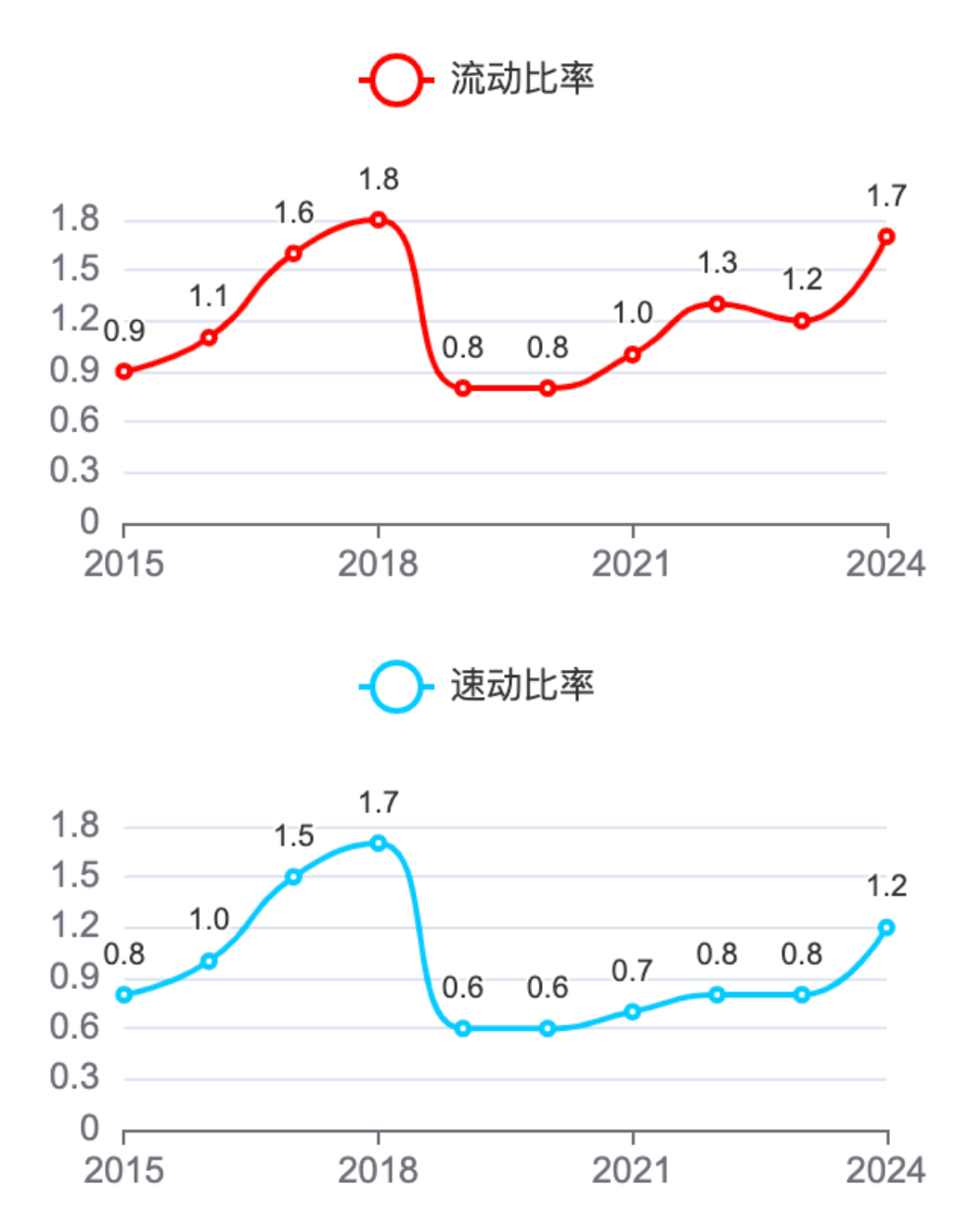 流动比率1.7,速动比率1.2。大于1还是不错的。