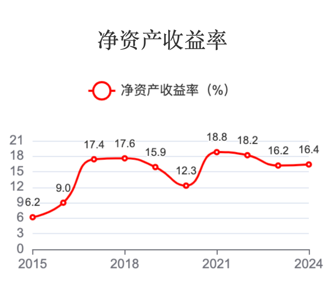净资产收益率近年多数时间在15%以上,2024年为16.4%。还是比较高的。较高的净资产收益率表明公司运用股东权益获取收益的能力较强,资产运营效率较高。