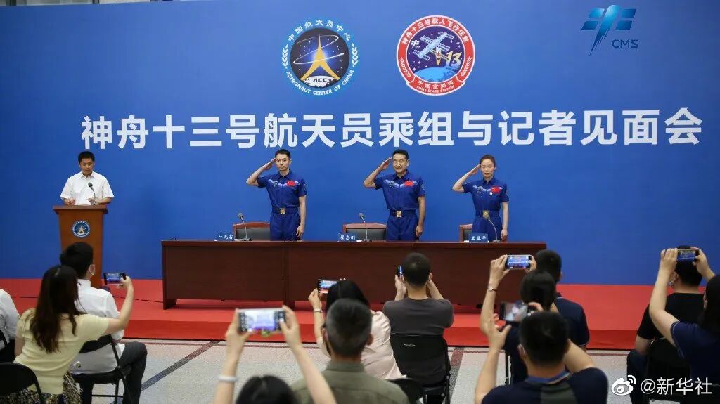 The three taikonauts of China's Shenzhou-13 crewed mission met the press and public on Tuesday, the first such appearance after returning to Earth in April.