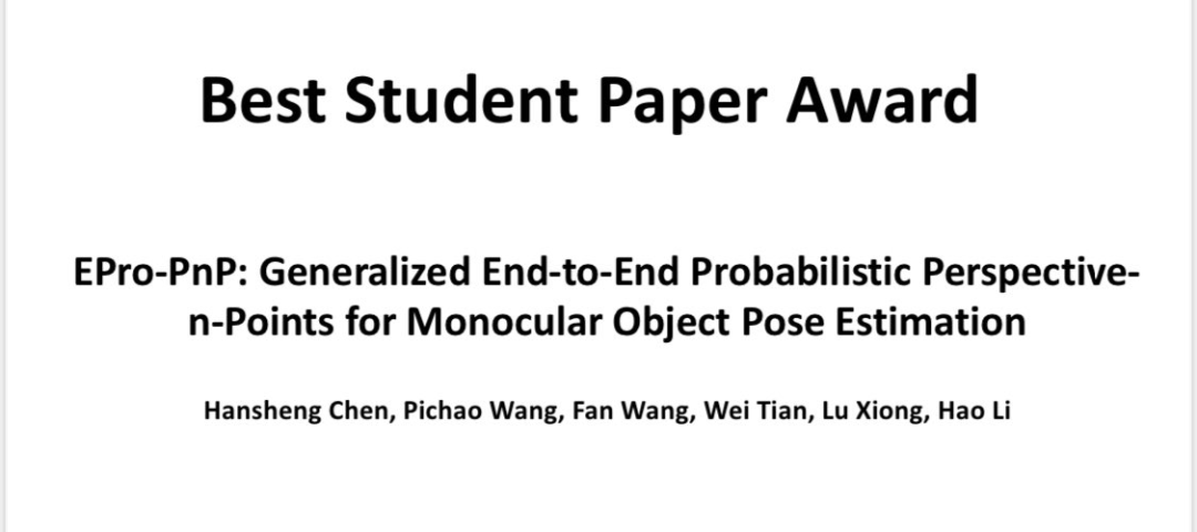 The first author of the paper is Chen Hansheng, a Master's student at the Institute of Intelligent Vehicles and Shanghai Science Centre for Autonomous Intelligent Unmanned Systems, School of Automotive Studies, Tongji University. This is the first time that the first author of a winning paper has come from a Chinese university since CVPR established the Best Student Paper Award in 2001. The best student paper nomination also went to Harvard University and a few others.