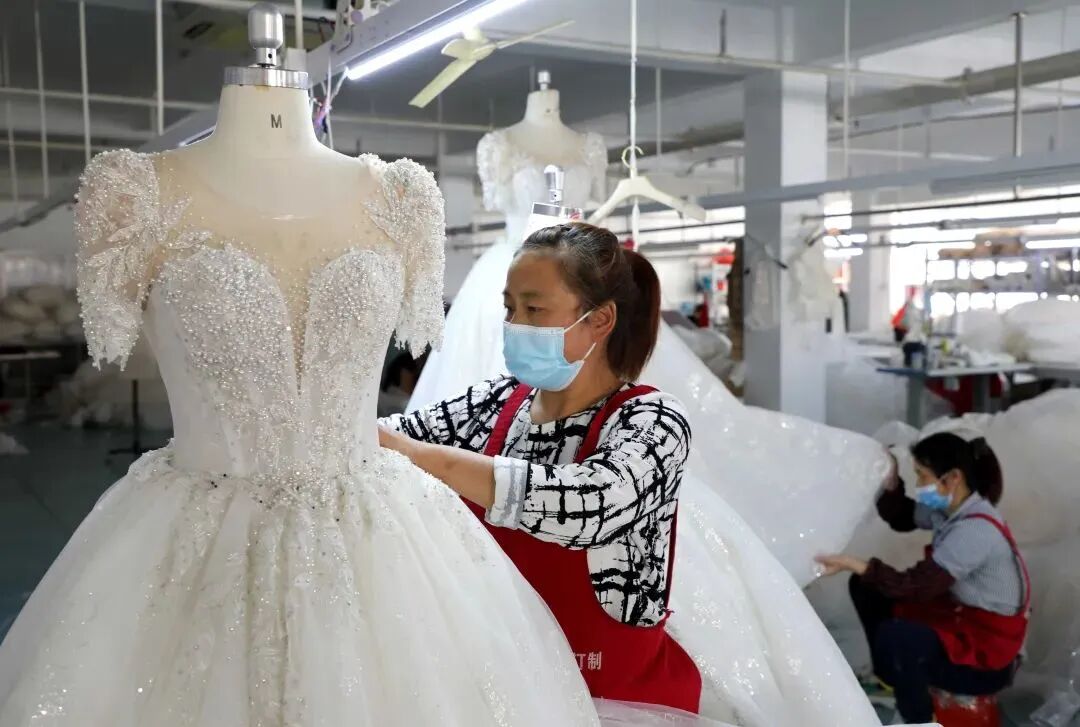 The export value of the township's wedding clothes industry reached $40 million in 2019, according to one local official.