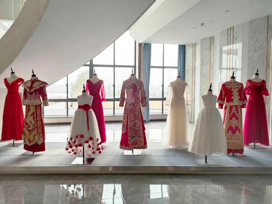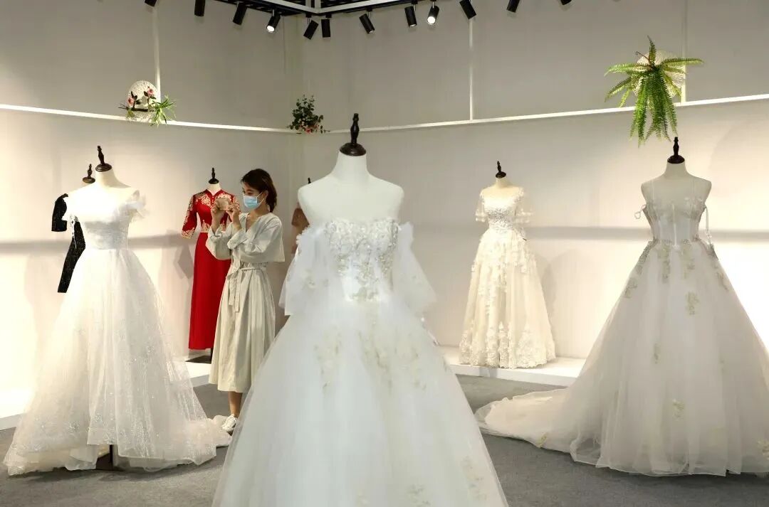 Xu said his company produces mainly middle-and top-grade wedding dresses, priced at about 1,000 yuan each for wholesale.
