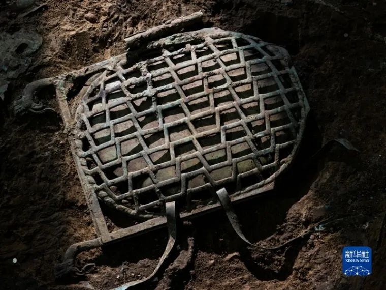 这是在三星堆遗址7号“祭祀坑”拍摄的龟背形网格状器(6月1日摄)。新华社记者 沈伯韩 摄