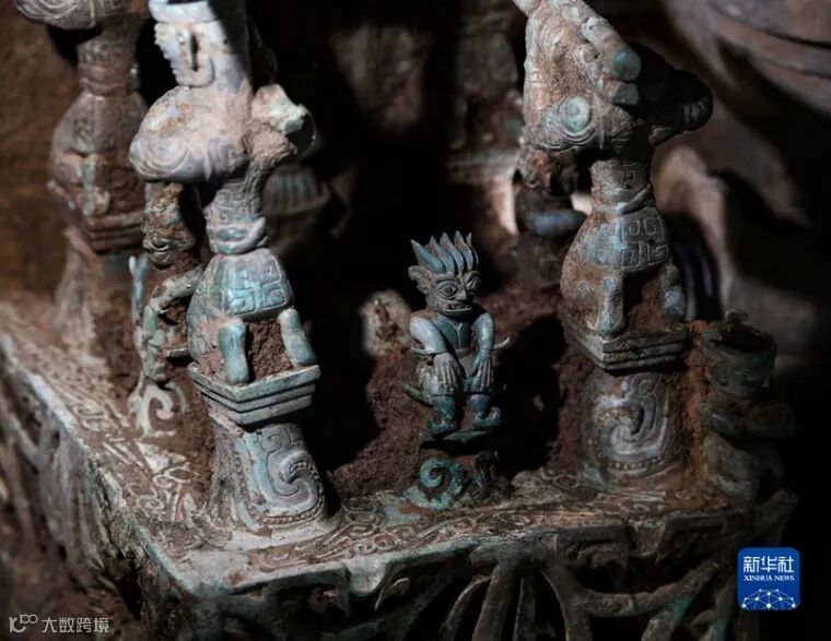 这是在三星堆遗址8号“祭祀坑”拍摄的铜神坛局部(6月1日摄)。新华社记者 王曦 摄