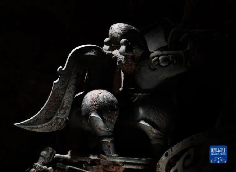 这是在三星堆遗址8号“祭祀坑”拍摄的铜神兽(6月1日摄)。新华社记者 王曦 摄