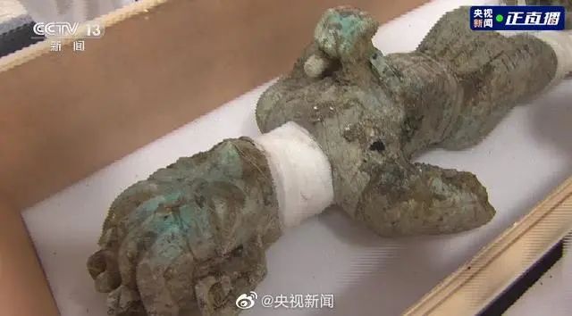 15日下午在央视的直播中,这件人像被成功提取,并且终于露出了正脸!提取这座人像的考古人员将其小心抬出坑后,便合力将立人在泡沫板上轻轻翻转,只见它翘着大拇指,仿佛在点赞↓