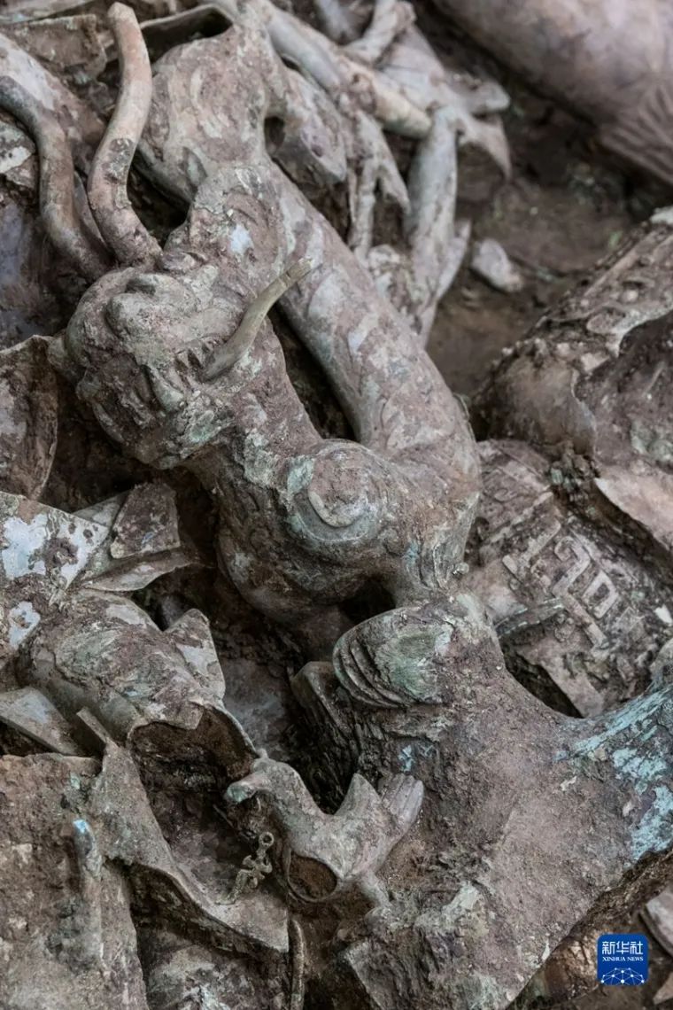 这是在三星堆遗址8号“祭祀坑”拍摄的铜龙(5月31日摄)。新华社记者 唐文豪 摄