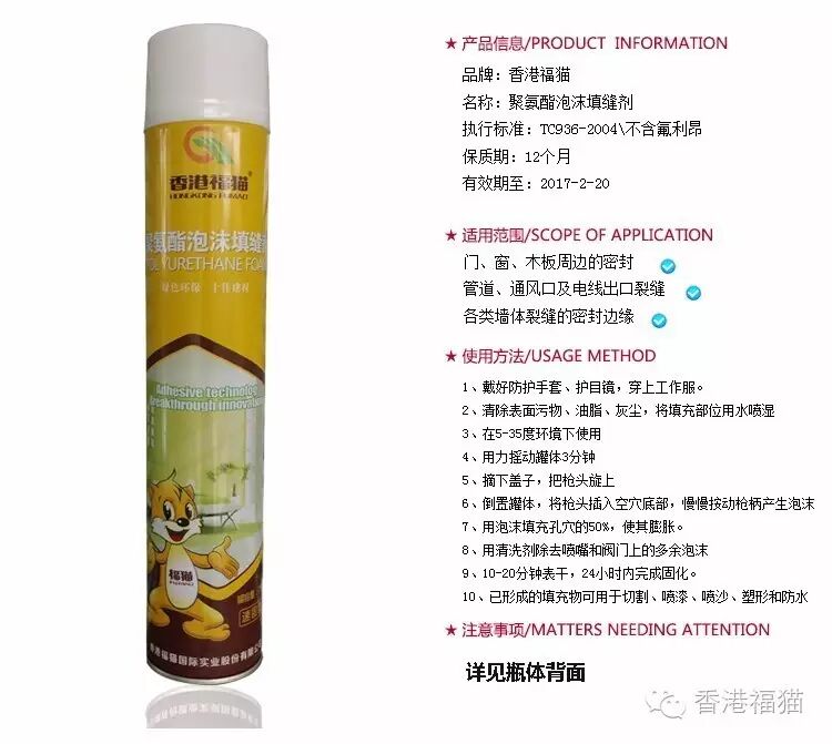 适用于门、窗、木板周边的密封管道、通风口及电线出口裂缝各类墙体裂缝的密封边缘。安全环保,不含氟利昂等有害物质。