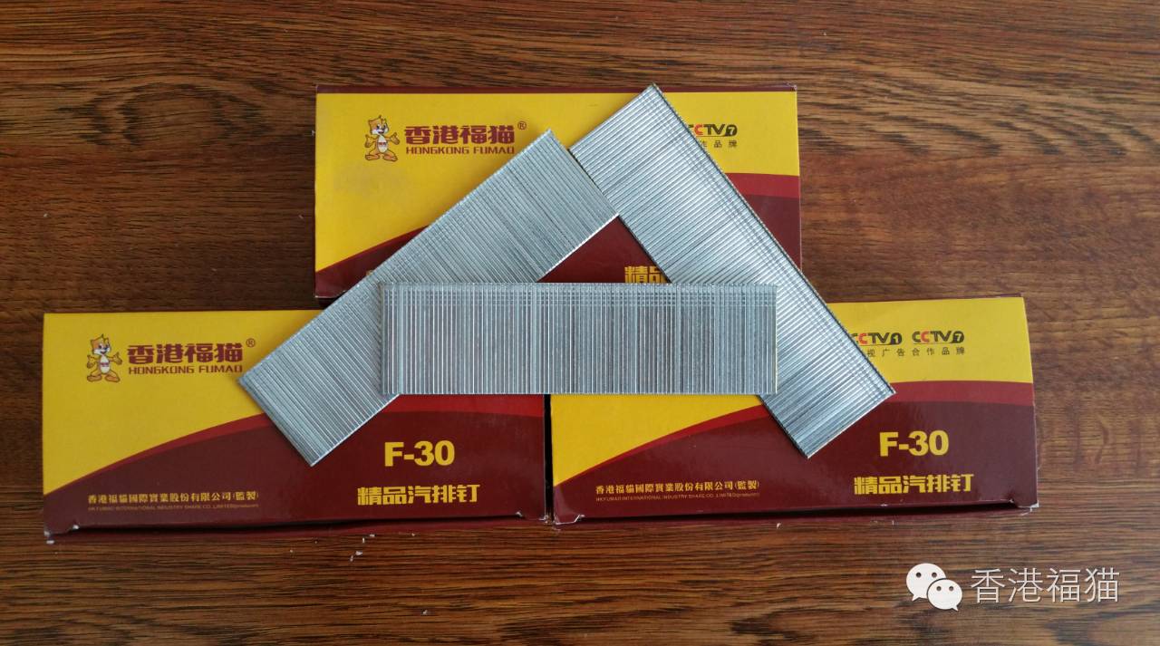 在建筑,装修,家具,包装,装潢,沙发,皮鞋,皮具等行业得到越来越广泛的应用香港福猫汽排钉质量稳定,采用优质钢材精心打造,不会出现卡枪卡槽弯钉等质量问题。抗生锈、抗腐蚀、不易弯曲,美观大方。F-30