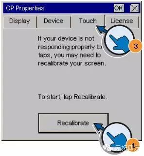 步骤3-4:切换至“Touch”选项卡,点击“Recalibrate”按钮,打开校准画面。
