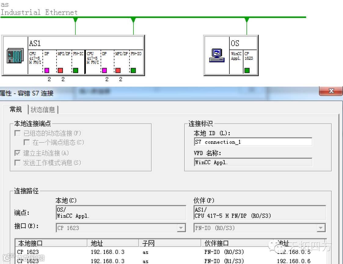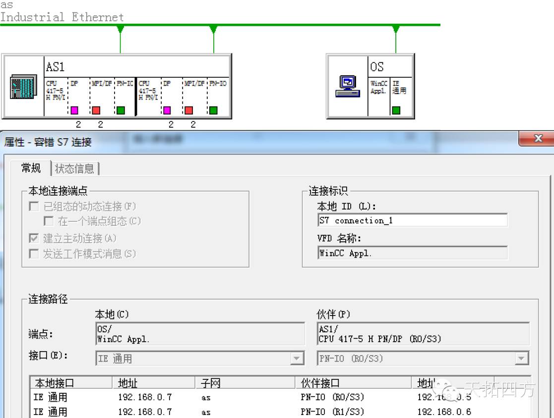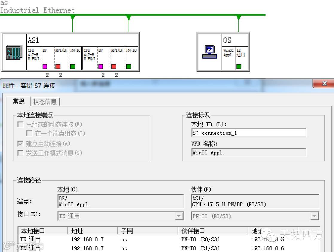 PCS7 V8.1开始,可以使用普通网卡与HCPU建立S7容错连接。普通网卡与PN接口建立的S7容错连接信息如下图所示: