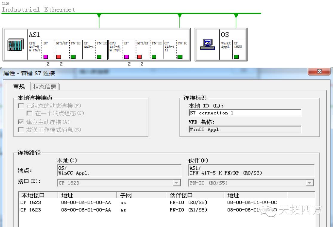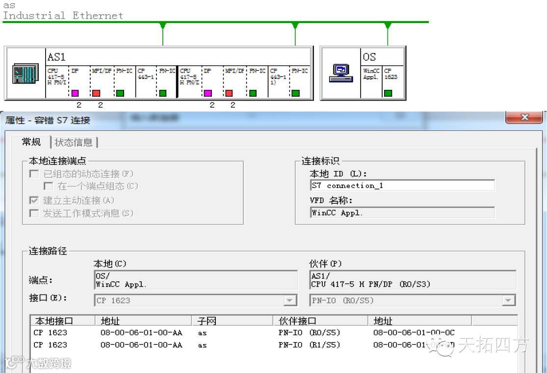 PCS 7从版本V5开始就可以实现OS和HCPU之间的容错通讯。需要CP1623和CP443-1网卡,基于MAC地址的S7容错连接信息如下图所示: