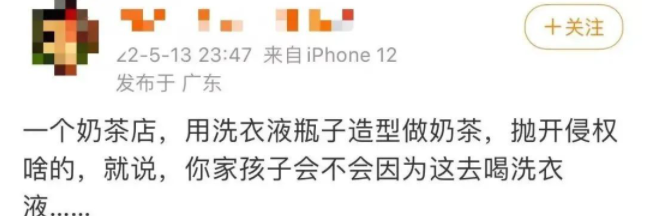 “洗衣液奶茶”的出现,也引来了诸多争议,有网友认为,不是所有的新意都值得提倡,创新也要有底线。