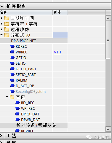 在扩展指令中打开分布式I/O文件夹,然后打开其他文件夹,选中DPRD_DAT 和 DPWR_DAT命令,并在OB1中调用。如下图。