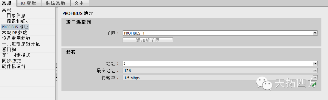单击S120设备,在属性页面单击PROFIBUS 地址页面设置参数地址3作为S120设备DP地址。并在CU320控制单元地址旋钮设置DP地址为3与软件设置相同即可。