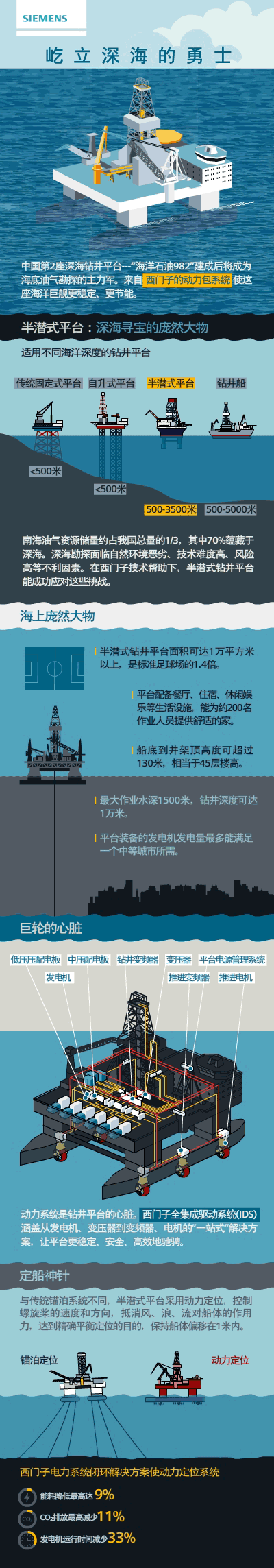 为了让大家更深入地了解深海钻井平台,西门子工程师专程为大家制作了下面这张不折不扣、含金量极高的信息图。让我们一起探寻深海寻宝勇士的奥妙吧!
