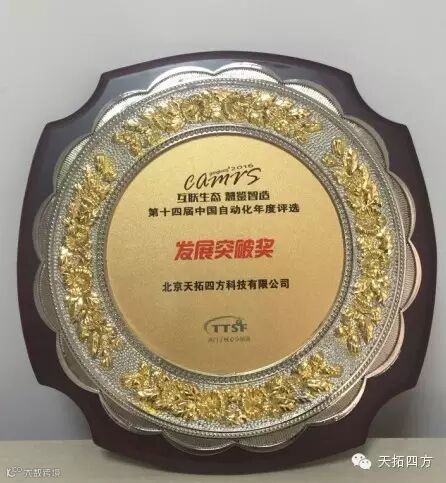 近日,2016中国自动化年会(CAMRS)在北京隆重召开,经专家评委会、广大用户投票以及市场分析综合评议,第十四届中国自动化年度评选结果新鲜出庐,致力于自动化产品研发应用及市场运营的北京天拓四方科技有限公司,凭借近年来业内广大客户的支持及2015年公司在各行业市场中技术应用方案和市场份额的多项突破,在众多优秀同行的竞争中脱颖而出,荣获中国自动化行业2016年度“发展突破奖”。