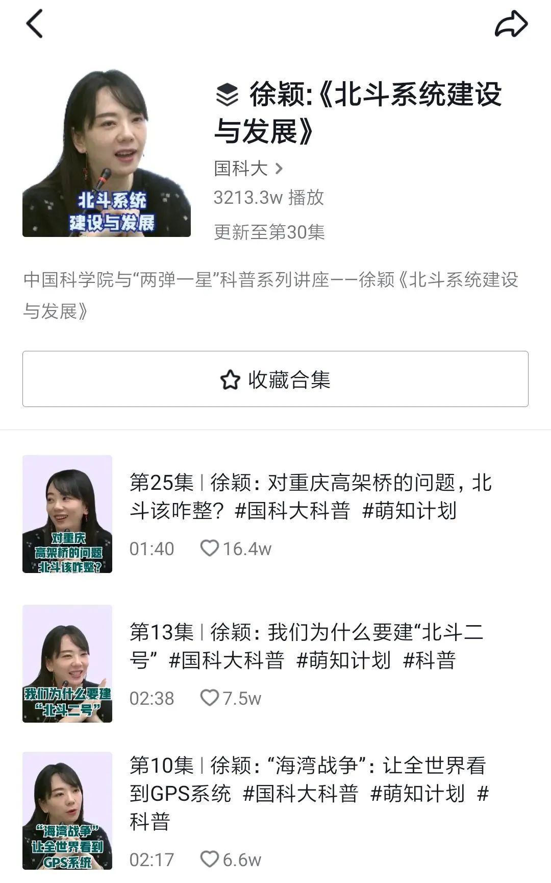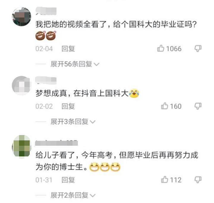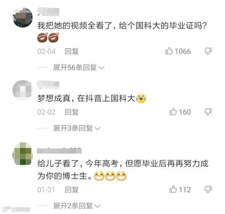 北斗系列视频在国科大官方抖音号上发布后,受到网友们的好评,吸引超过3200万人次观看。有人感叹,这才是我们应该追的明星。有人则开玩笑称,看了这些抖音科普视频,约等于上了国科大。还有家长跟即将高考的儿子分享这些视频,希望对方之后走上科研道路。