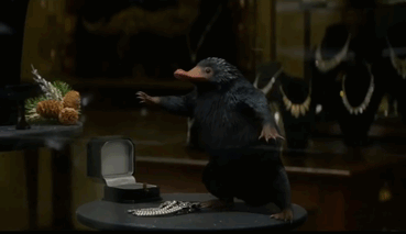 如果神奇动物们有个“想撸排行榜”,嗅嗅泰迪(Teddy, a niffler)一定会名列前茅。泰迪对“bling bling”的东西的热爱,在这部新片中,简直达到了巅峰,有一幕是泰迪纵身一跃,不顾一切要在半空中去救护树罗锅皮克特(Pickett, a bowtruckle),然而这个结果,一定是你万万想不到的。