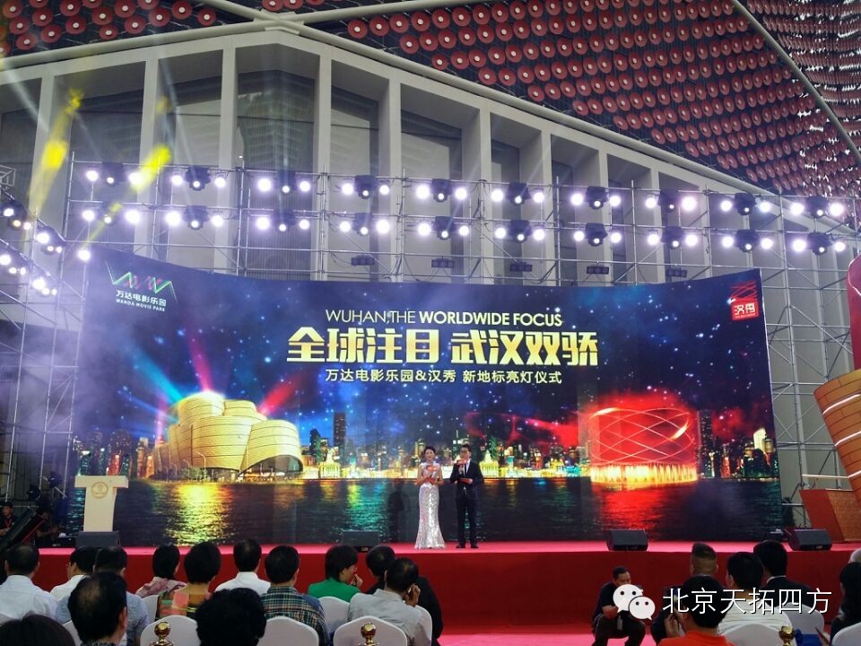 武汉东湖西岸,一座外形犹如"红灯笼"的建筑已经成为江城新地标,点亮武昌夜景。这是万达集团为"汉秀"建设的专属剧场。万达邀请世界著名现代舞台艺术大师弗兰克·德贡创作编导的"汉秀",是综合了舞台剧、杂技、音乐、舞蹈、水上芭蕾、特技动作等多种表演形式,借助现代化舞台技术,展现楚汉大地传奇史诗的驻场舞台秀。经过前后近4年的筹划、剧场建设和节目编排,万众瞩目的"汉秀"于2014年12月20日成功首演。