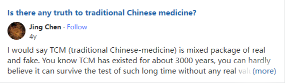 要知道几年前,还有不少不明觉厉的外国网友完全不相信中医,他们曾在Quora上提问,中医是真的吗?