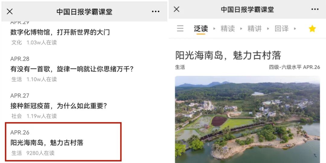 关注“中国日报学霸课堂”公众号,点击“个人中心”——“精读试听”,就可以免费试听啦。