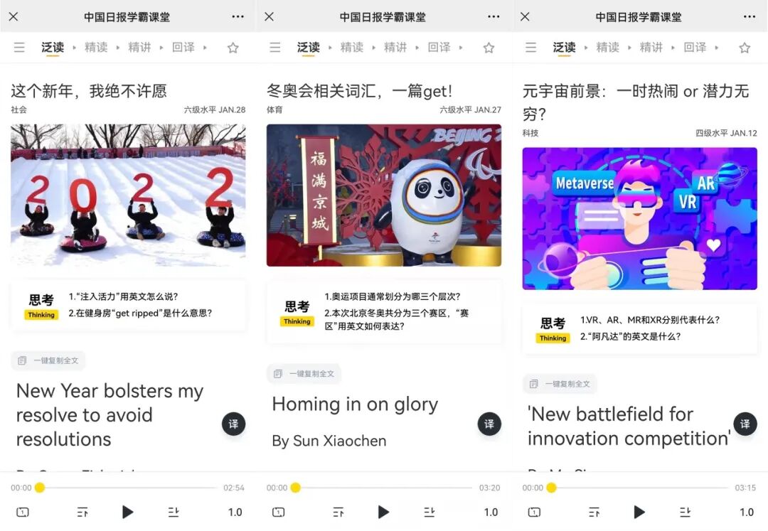 ……英语学习涉及的每一个环节,你都可以在学习China Daily精读计划课程时得到练习。