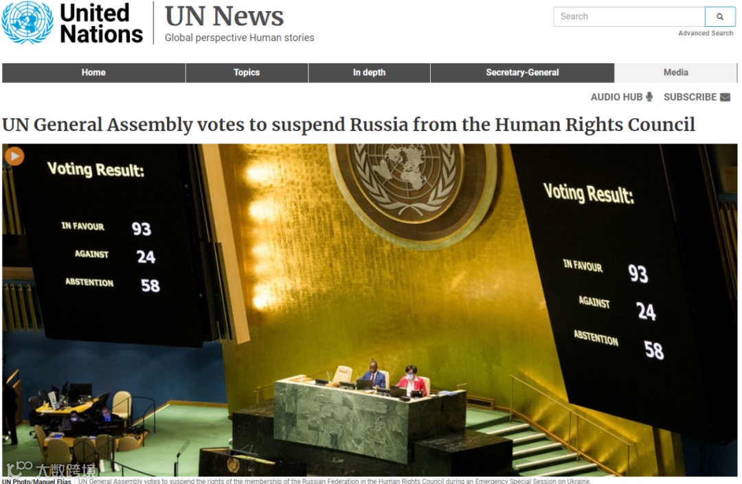 美国等国提出的这项决议草案对“乌克兰持续的人权和人道主义危机”等表示严重关切,要求暂停俄罗斯在人权理事会的成员资格。