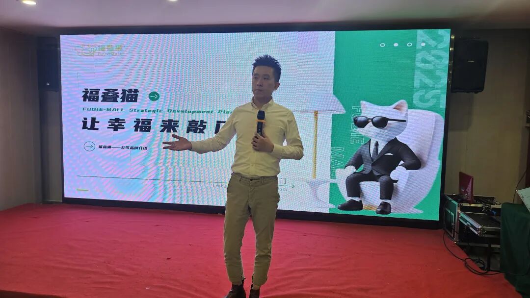 同时,李总结合真实经营数据与典型商户案例,介绍福叠猫线上线下全渠道经营体系与智能化管理工具,现场气氛达到高潮,数百名与会者掌声雷动。