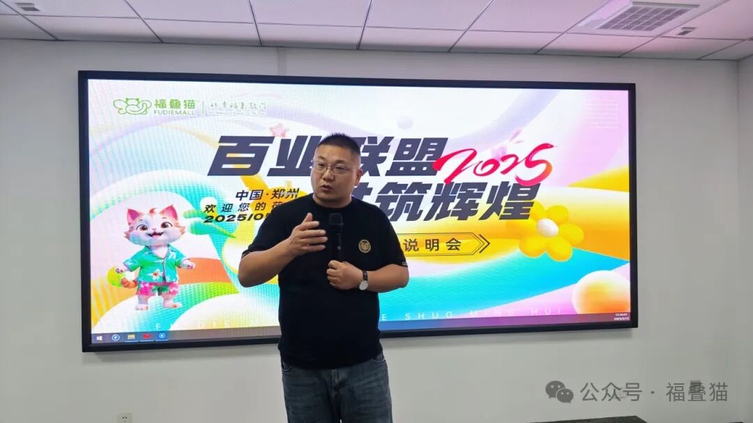 会议设分享环节,福叠猫市场副总裁刘全领深度解读1000+商家合作动因:平台依托央企资源整合力,提供全产业链支持;AI智能系统精准赋能运营决策;生态互联激发跨界增长。针对拓店人员事业前景,刘总强调“轻资产创业+全域收益共享”模式,鲜活的案例展现平台“全域流量+智慧运营”模式的实践价值,引发与会者强烈共鸣。