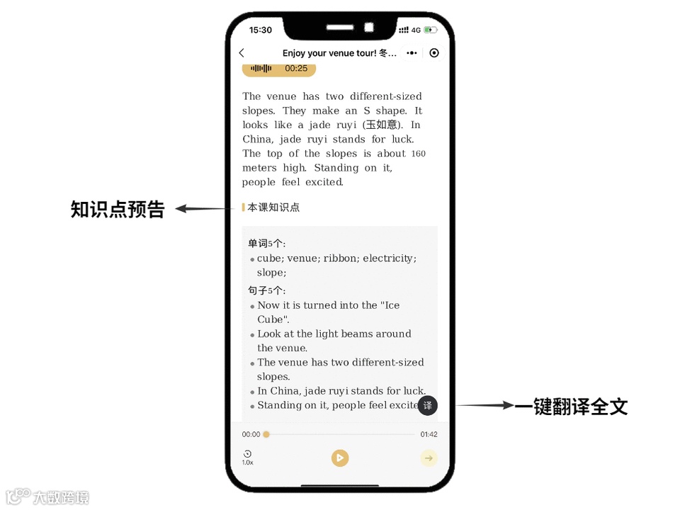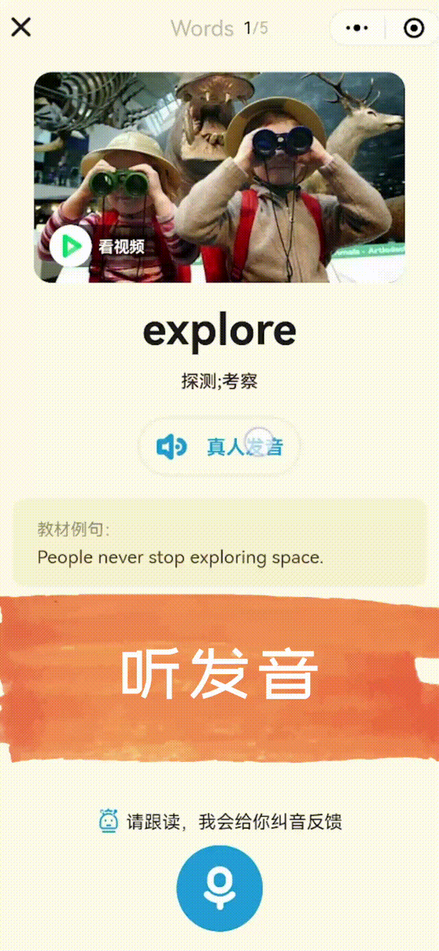 单词跟读与练习:了解完整篇文章,即可有针对性地进行单词、固定表达的学习和跟读、纠音和练习。