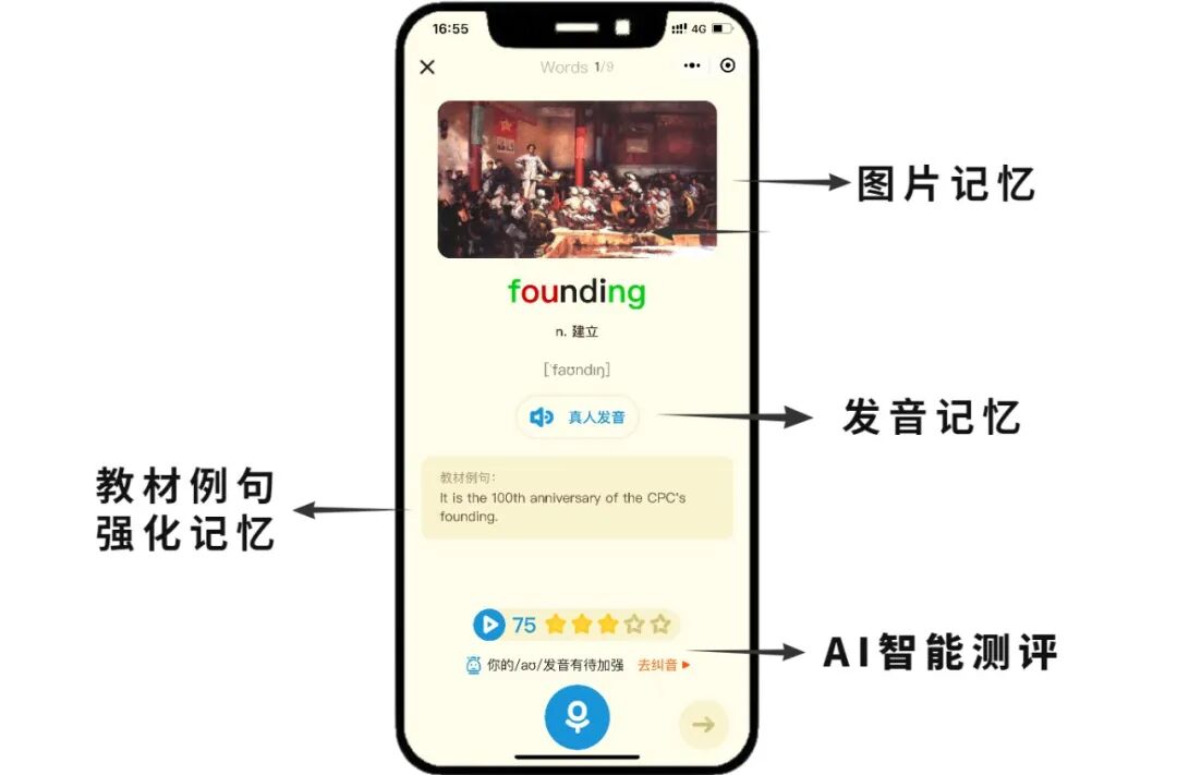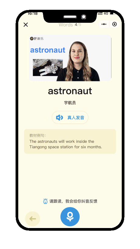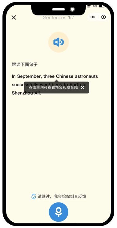 AI 陪伴, 听读纠音实时评分反馈,准确发音一学就会。