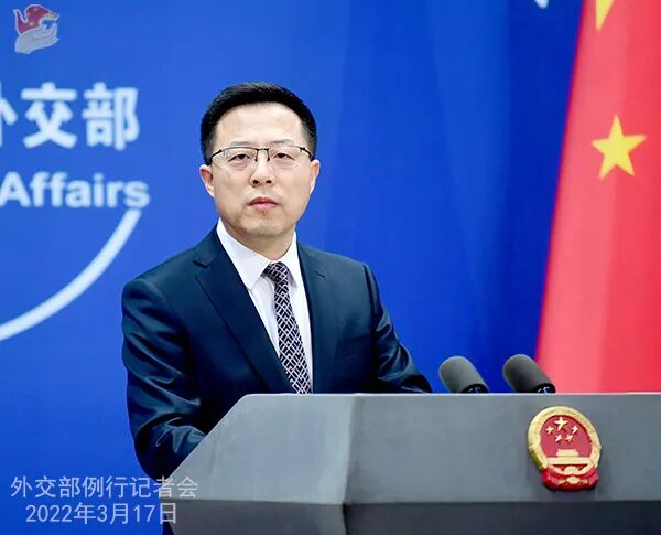 3月17日,外交部发言人赵立坚主持例行记者会。有记者就中方在俄乌冲突中的立场进行提问。