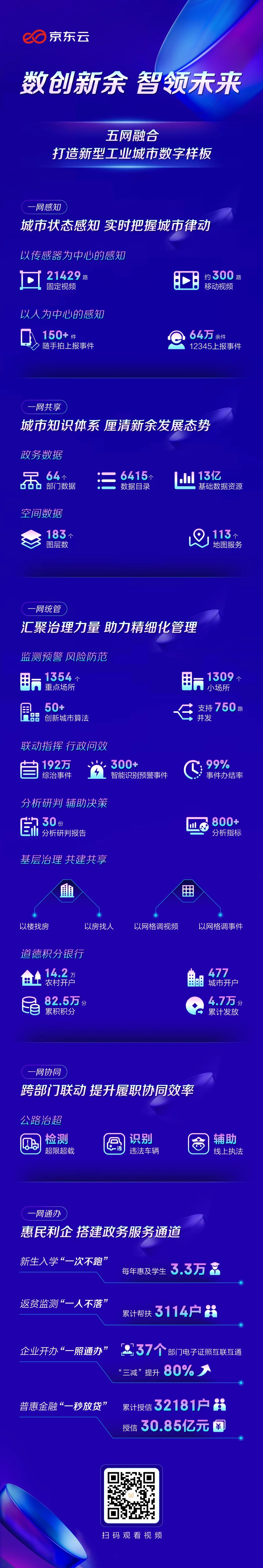 京东云提供数字政府技术支持,以智能城市操作系统为底座,基于“五网融合”理念推进数字城市建设,助力打造新余“城市大脑”,推动新余市域社会治理现代化“智治”提升,助力做优做强新余数字经济,打造新型工业城市数字样板。