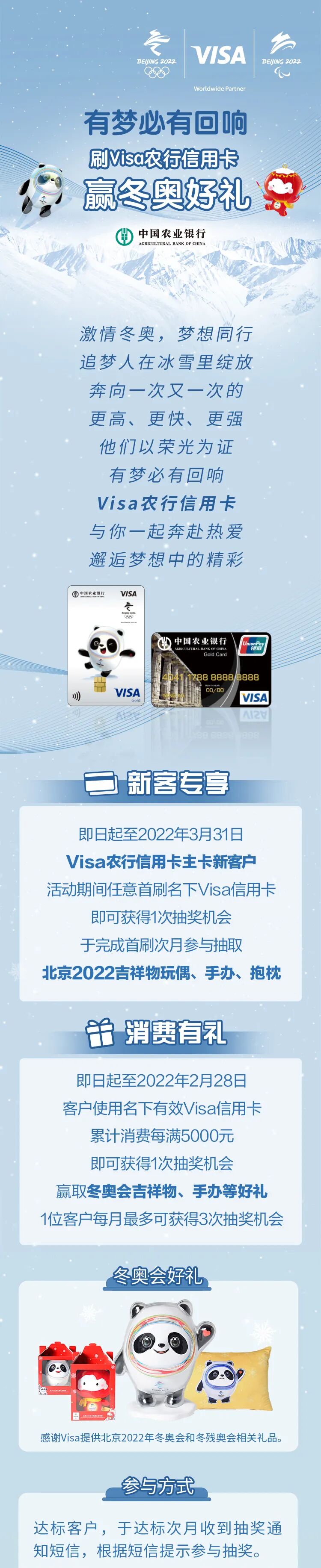 刷Visa农行信用卡,赢冬奥好礼,为冬奥助威!